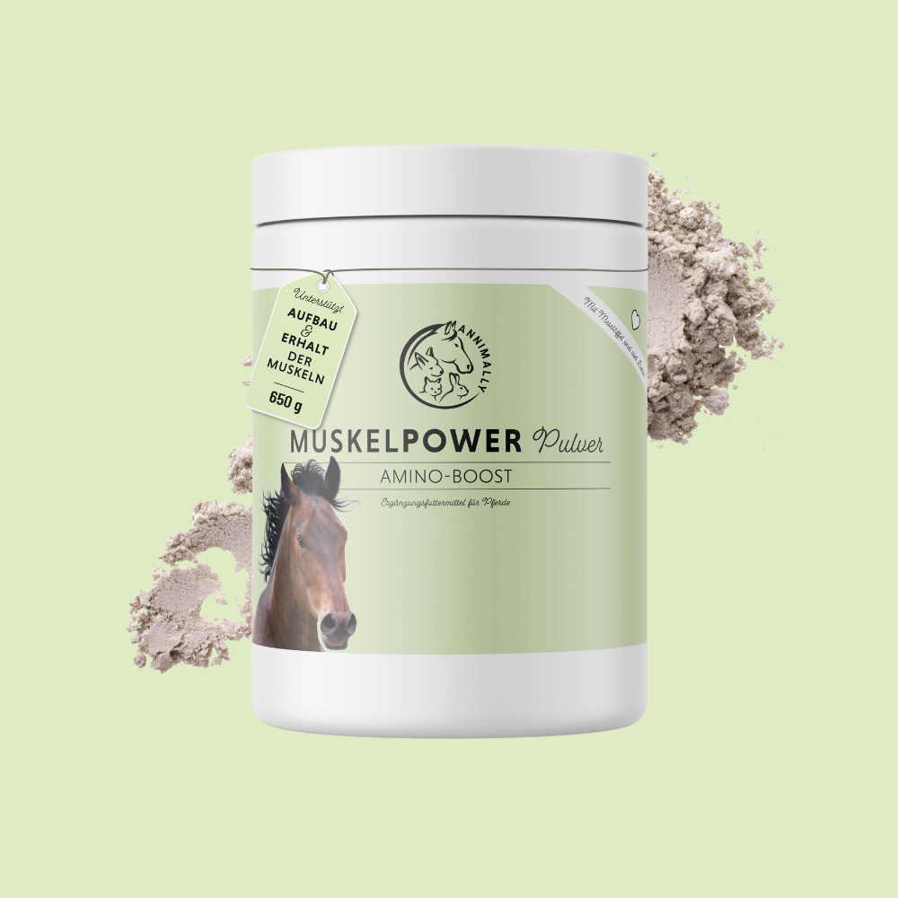 Um Muskeln nachhaltig aufzubauen und Muskelabbau vorzubeugen, benötigt der Pferdekörper Aminosäuren. Genau hier setzt das Muskelpower Pulver an. Es versorgt Dein Pferd mit allem, was den Muskeln gut tut. Als tägliche Futterzugabe erhält Dein Ross auf diese Weise den reinsten Amino Boost für gesunde und starke Muskeln.