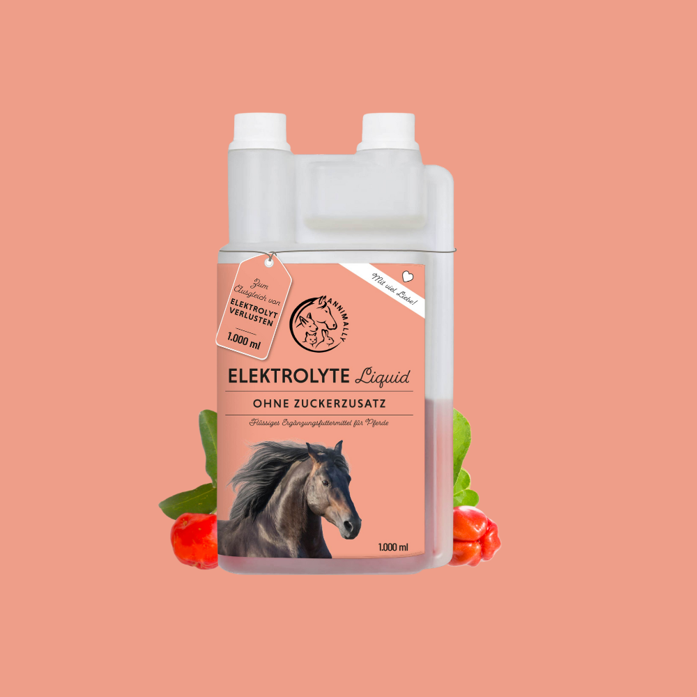 Essenzielle Vitamine und die Kraft aus der Acerolafrucht tragen zu einem ausgeglichenen Elektrolythaushalt bei und unterstützt den Gesamtkreislauf Deines vierhufigen Freundes. Bei steigenden Temperaturen und schwitzenden Pferden trägt unser Liquid zur schnellen Regeneration bei. Auch bei Durchfall oder gar Kotwasser kannst Du auf das Elektrolyte Liquid zählen.